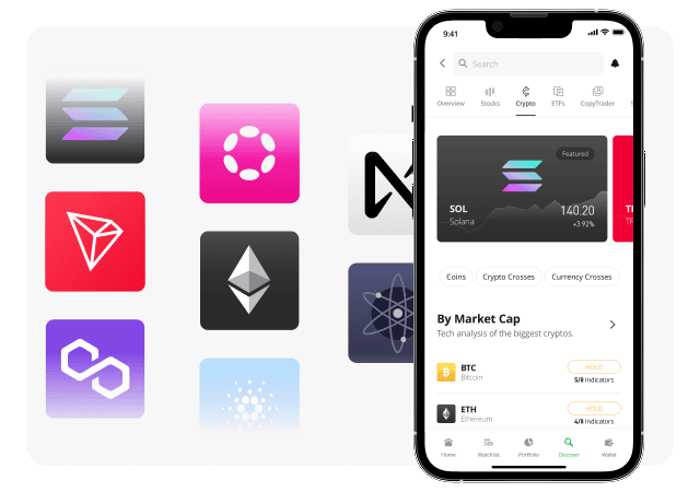 * UAE: For eToro ME users staking is only available for Cardano (ADA), Solana (SOL), Polygon (POL), Cosmos (ATOM, Polkadot (DOT) and Ethereum (ETH). See Schedule D, Section 10 of the T&Cs for details.