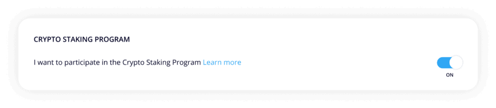 If you decide, even at a later stage, that you want to opt out of all staking services, simply follow the same steps as above and toggle the switch to OFF.