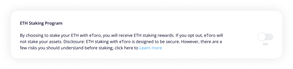 eToro ensures that it collaborates only with reputable staking providers and implements top-tier security protocols to minimize these risks.